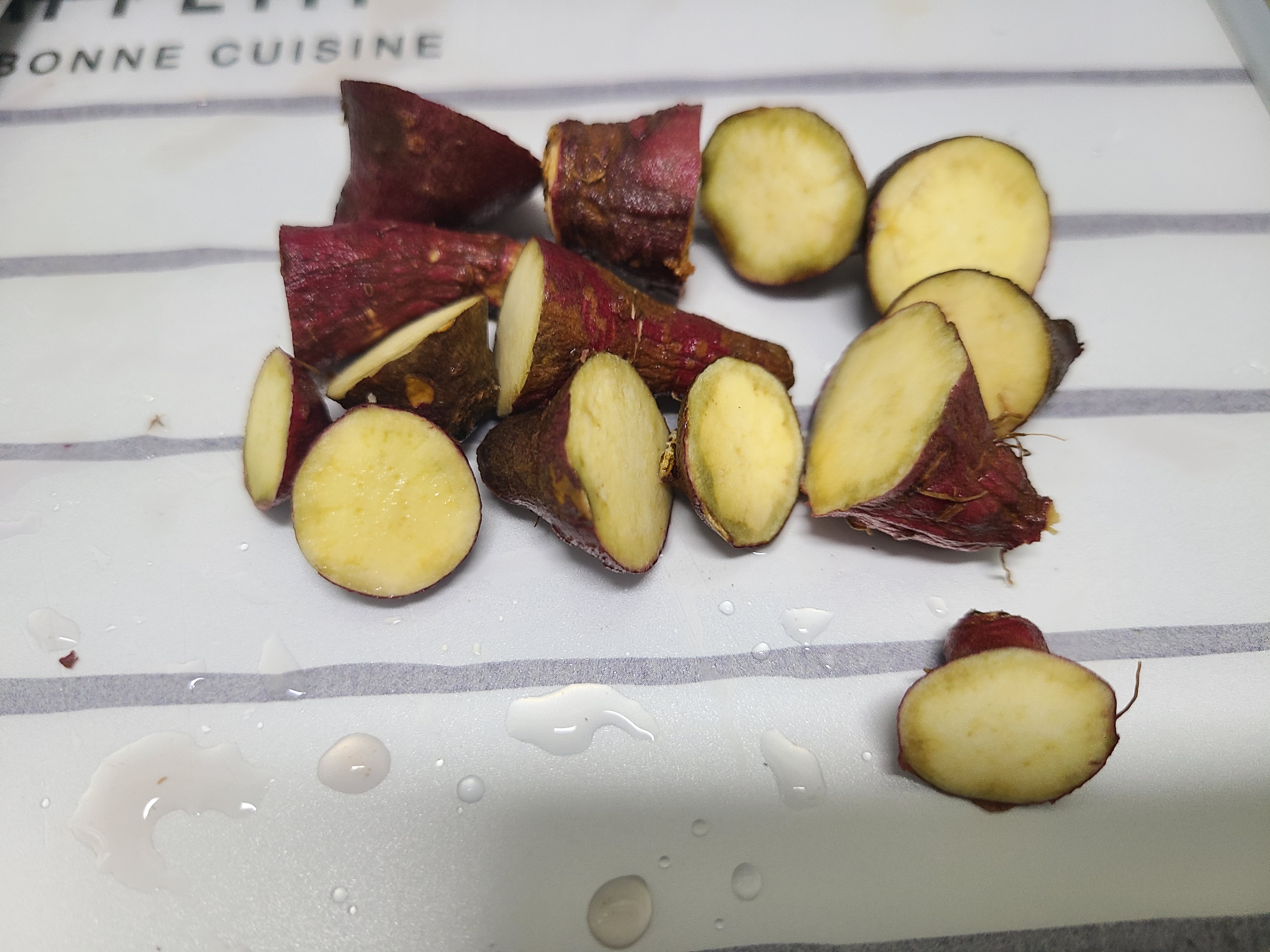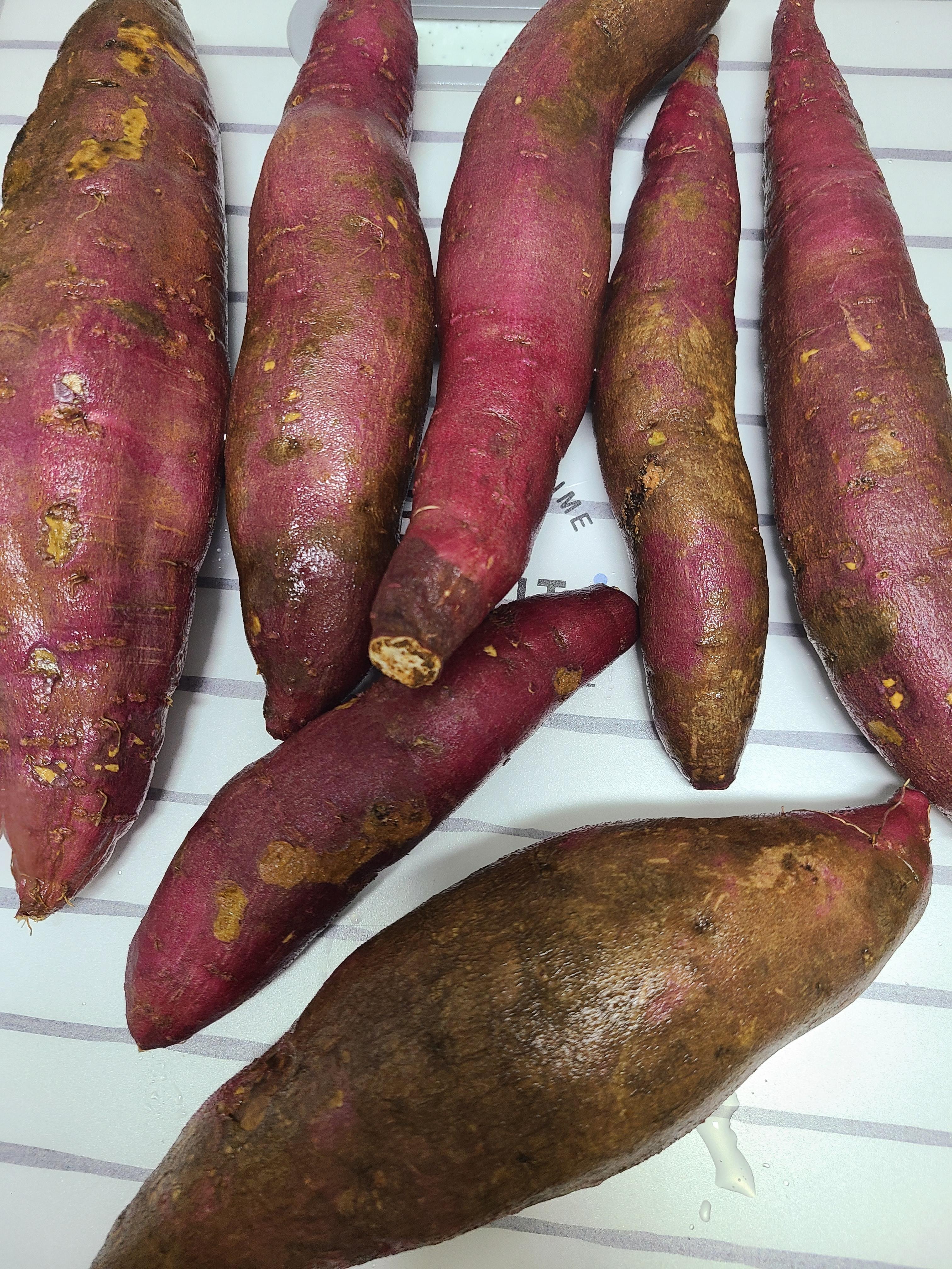 여러 가지 요리로 다 먹고 남은 7개의 고구마를 다 사용했다.(에어프라이어에 군고구마를 제일 많이 해 먹음. 정말 맛있어!!!) 먼저 고구마를 깨끗하게 씻어 준비해준다.